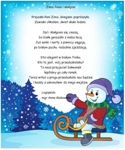 Nadchodzi zima, a wraz z nią rusza akcja pisania wierszyków o tej tematyce.