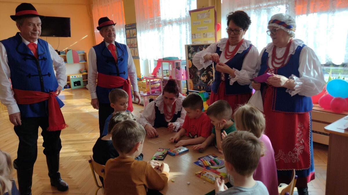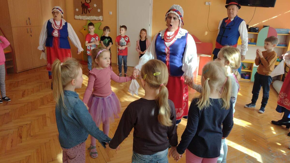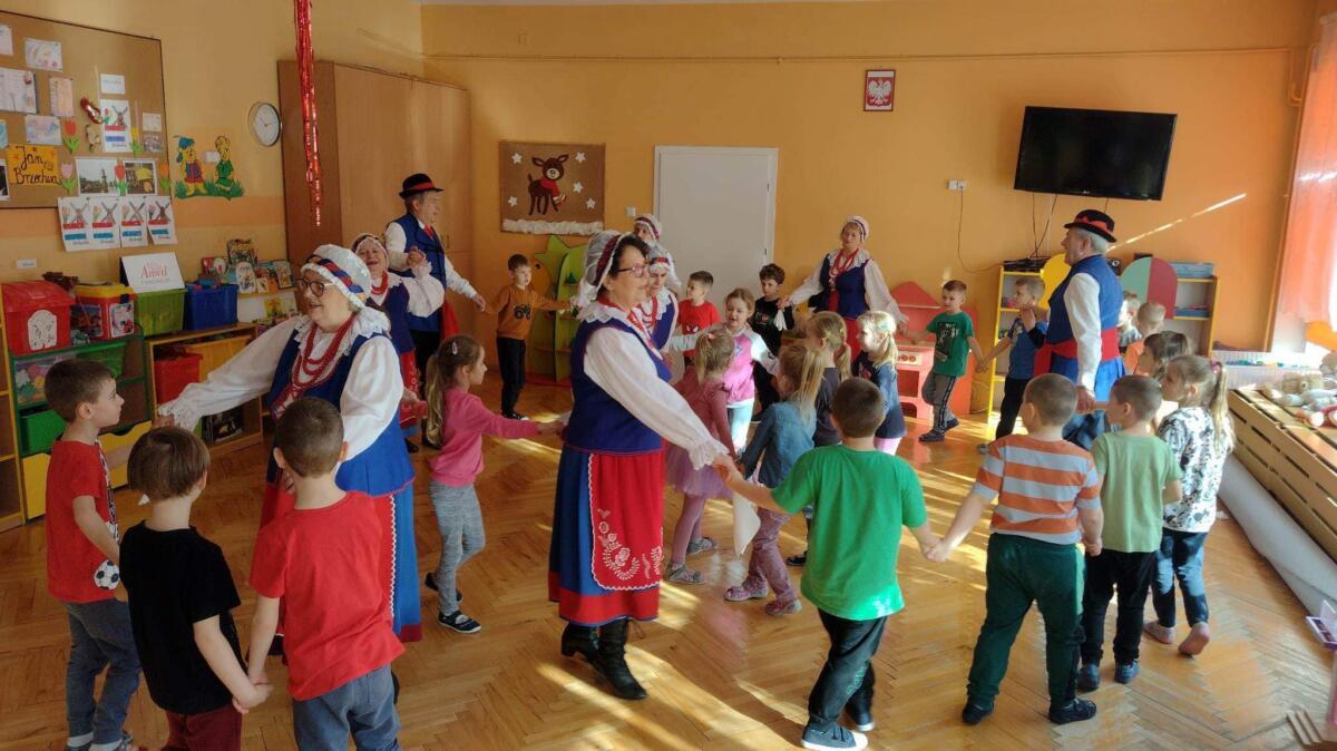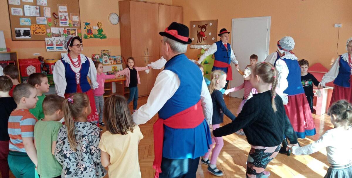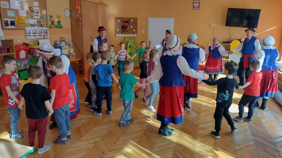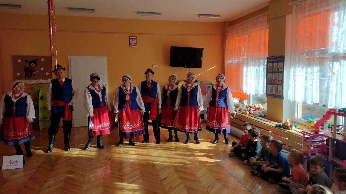 22.02.2023 r. grupy: „Gumisie” i „Smerfy” miały przyjemność gościć Zespół Pieśni i Tańca „WRZOS” 🙂.