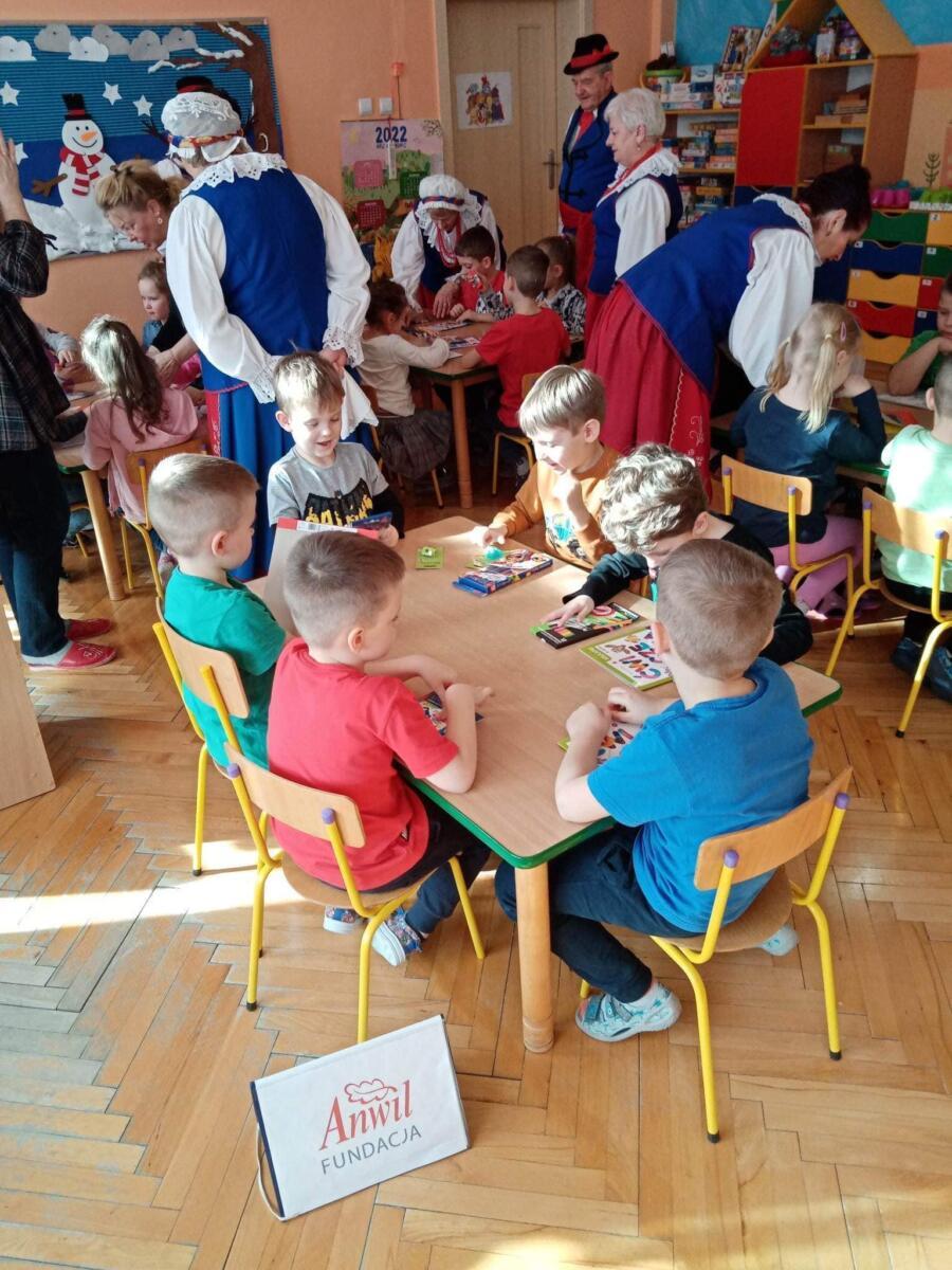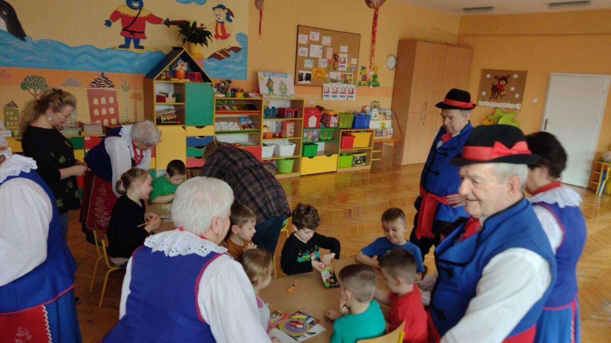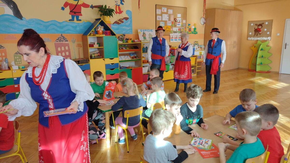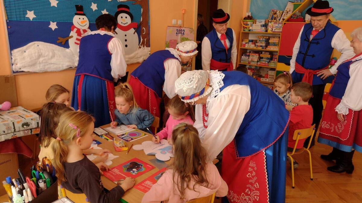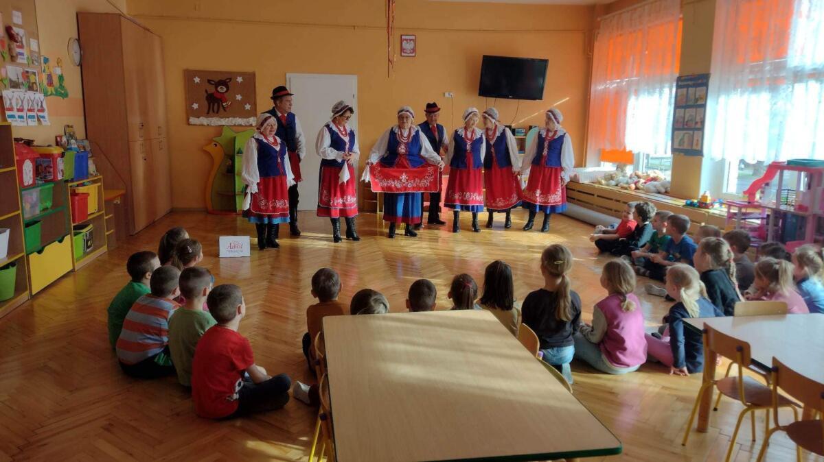 22.02.2023 r. grupy: „Gumisie” i „Smerfy” miały przyjemność gościć Zespół Pieśni i Tańca „WRZOS” 🙂.