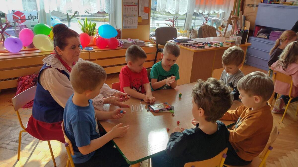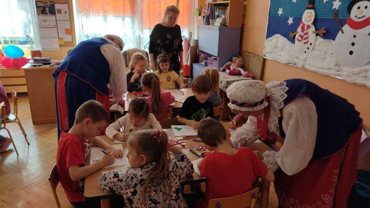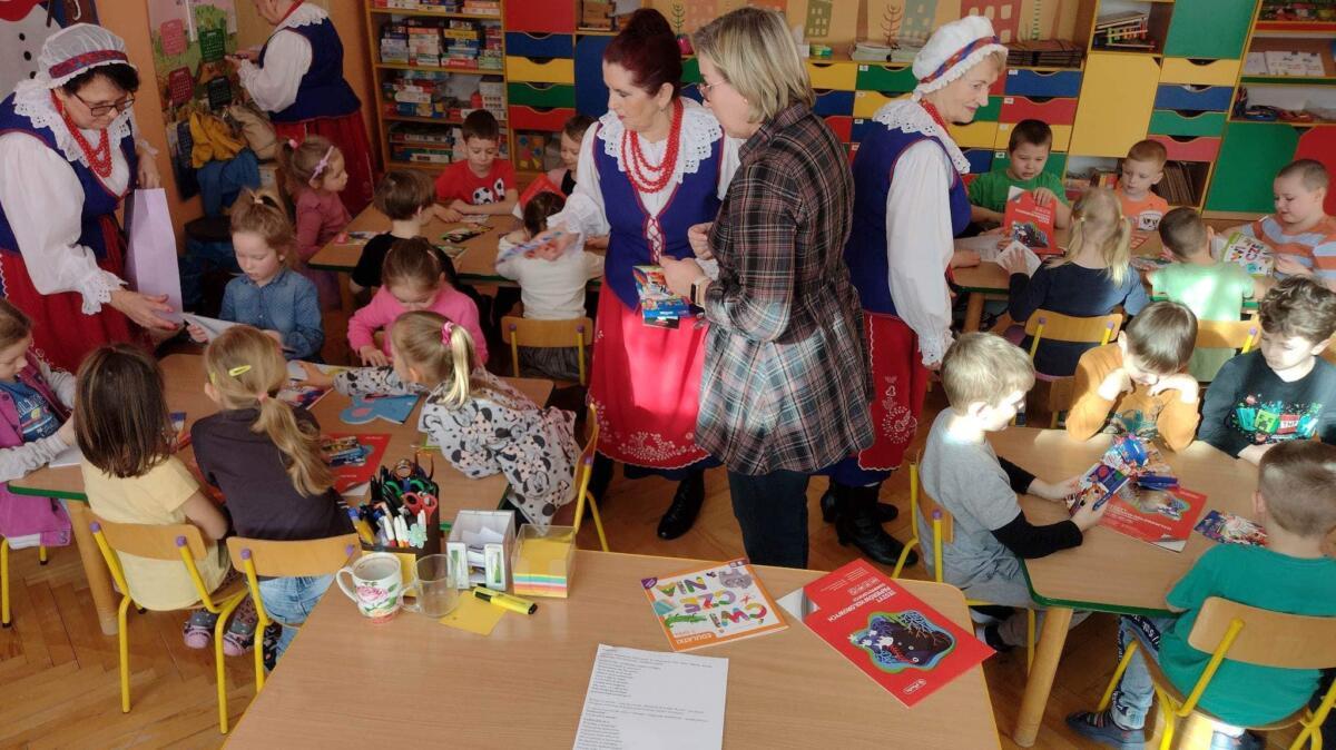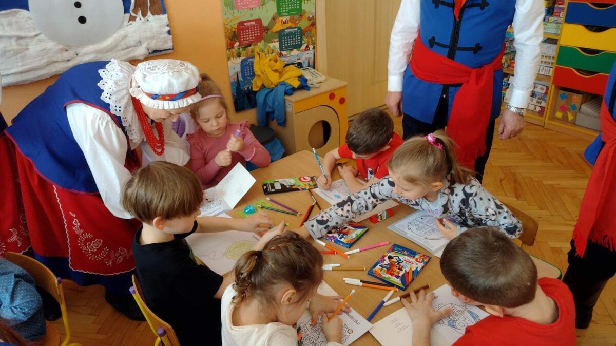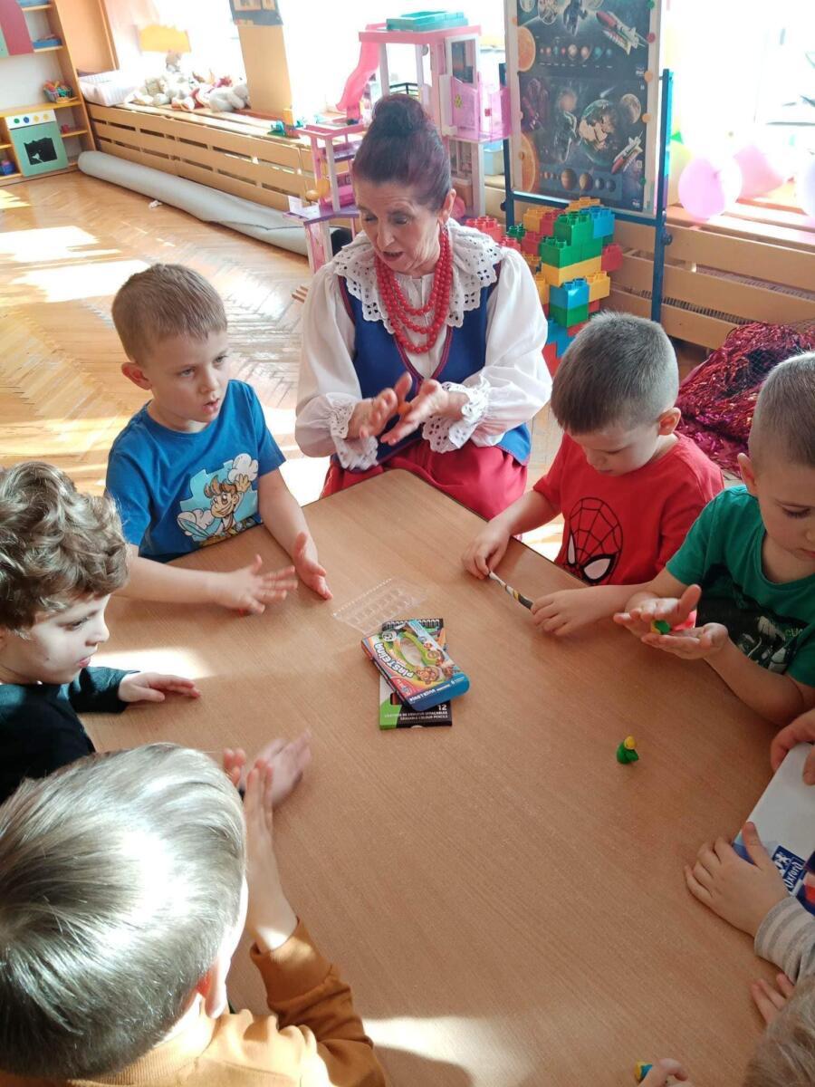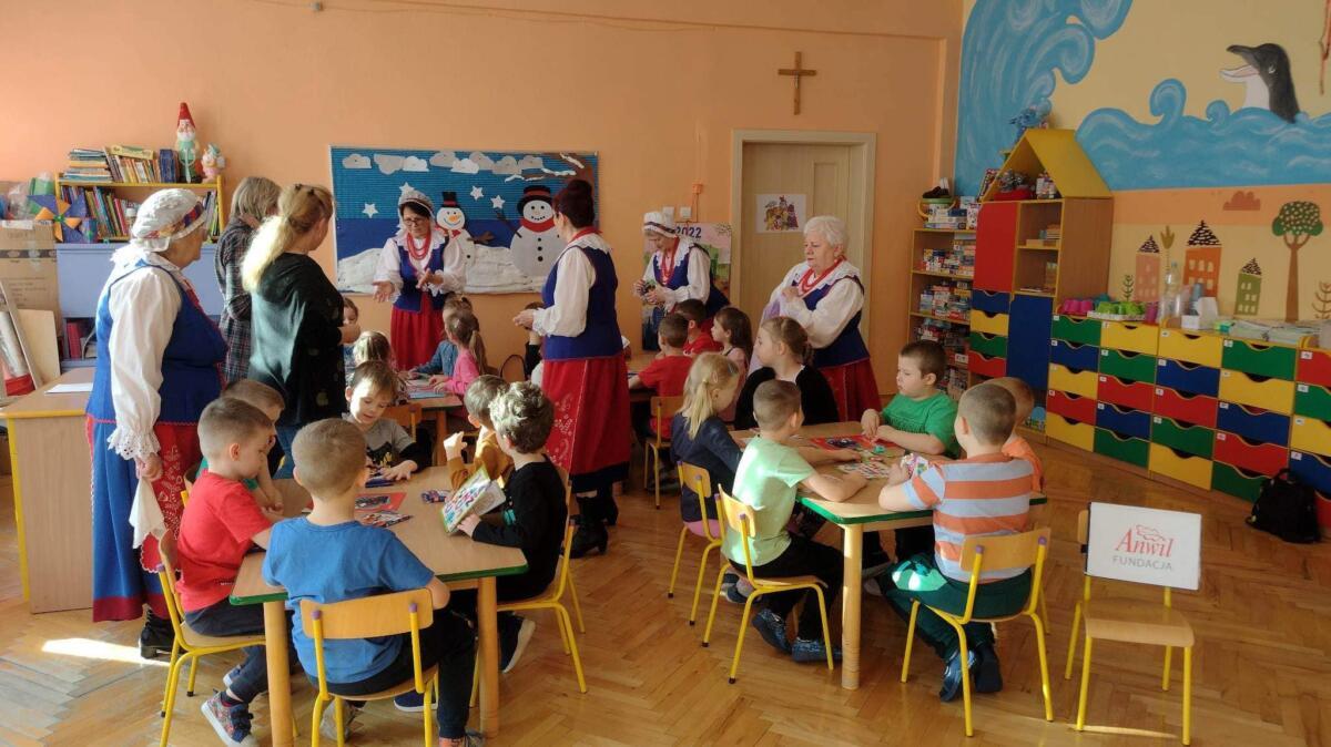 22.02.2023 r. grupy: „Gumisie” i „Smerfy” miały przyjemność gościć Zespół Pieśni i Tańca „WRZOS” 🙂.