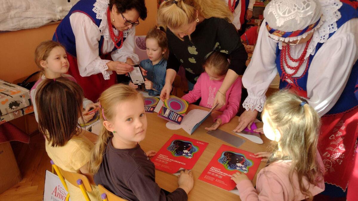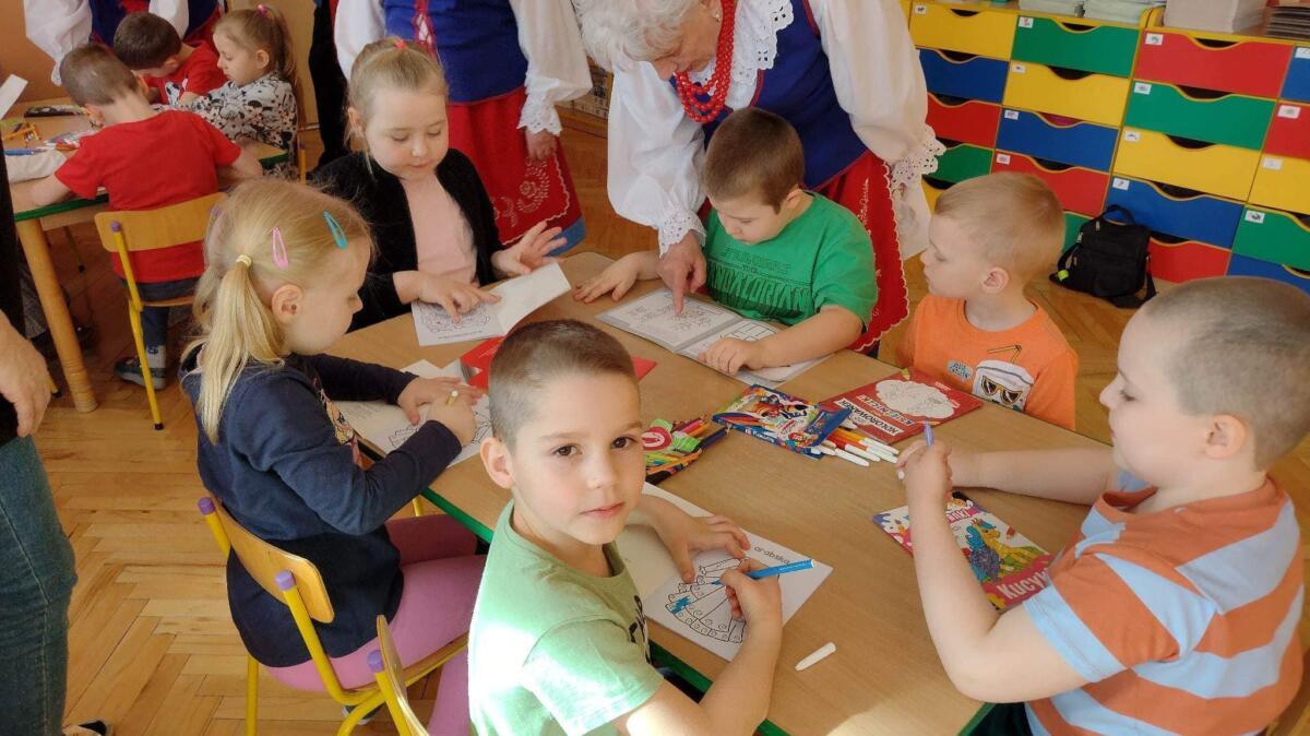 Dzieci otrzymały kolorowanki oraz przybory do rysowania i malowania,