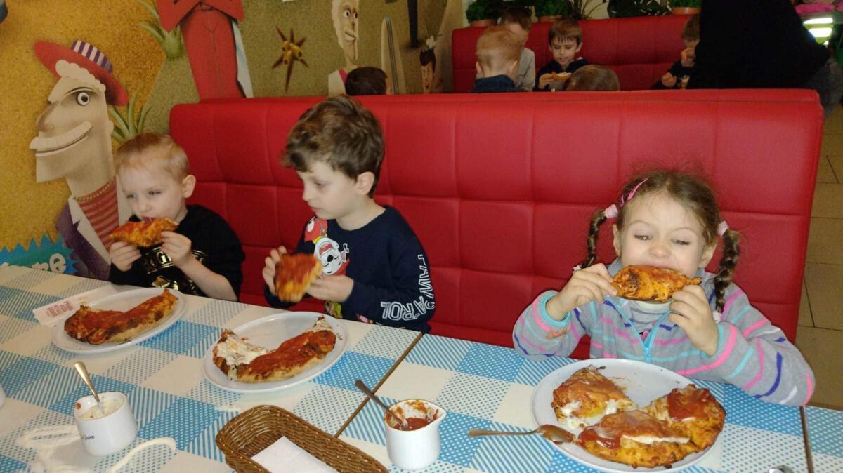 każdy przedszkolak jadł własnoręcznie przygotowaną pizzę.