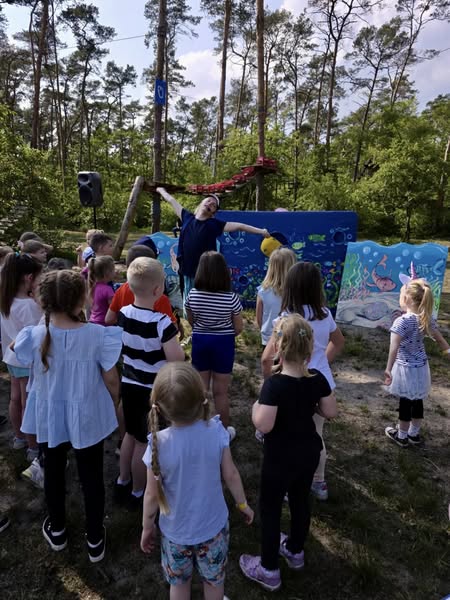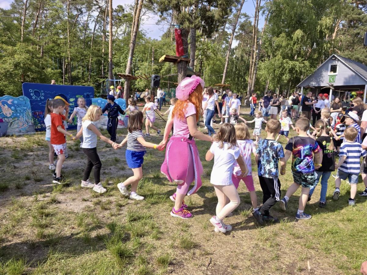 Następnie na uczestników czekały emocjonujące atrakcje: przejście przez trasy, zabawy z animatorami, zabawy tematyczne oraz spotkanie ze strażakami i możliwość wejścia do wozu strażackiego