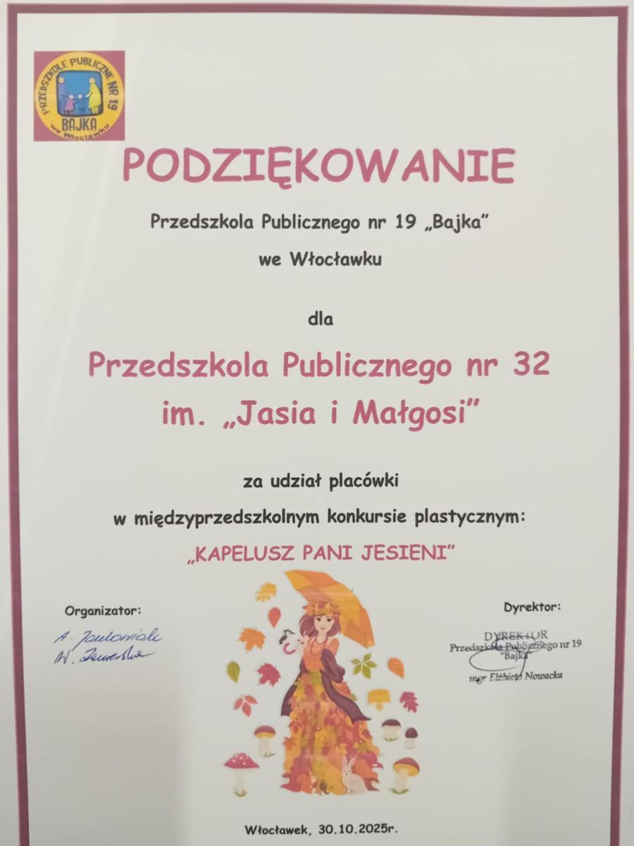 Międzyprzedszkolny konkurs plastyczny „Kapelusz Pani Jesieni” Małgosia z grupy „Misie” wzięła udział w międzyprzedszkolnym konkursie plastycznym „Kapelusz Pani Jesieni”. Gratulujemy wyróżnienia i życzymy dalszych sukcesów. 580356616 1420334106760564 6020472599648521411 n 581959335 1420334100093898 2709878228300551585 n 583924308 1420334143427227 5392360239756672507 n
