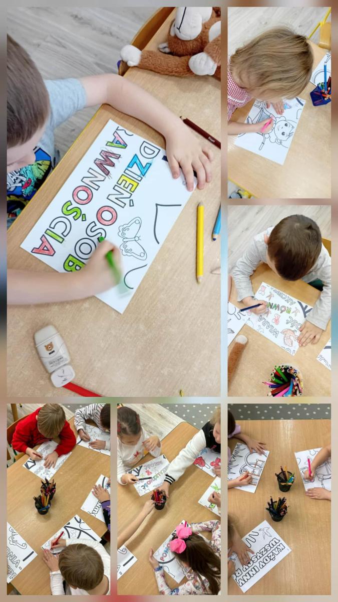 4 grudnia dzieci z grup integracyjnych „Misie” i „Sówki” pokolorowały obrazki, z których następnie wspólnie ułożyły giga kolorowankę pt. „Każdy inny, wszyscy równi!”.