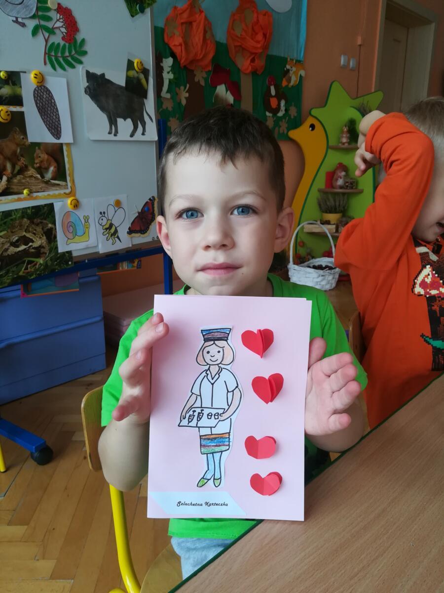 W ramach projektu „ Szlachetna Karteczka” dzieci z grupy Gumisie wykonały kartki, które zostały własnoręcznie przez nich wykonane. W październiku kartki z podziękowaniem trafiły w ręce pracowników Służby Zdrowia i policji, w listopadzie do pracowników biblioteki publicznej przy ul. Grodzkiej ( wraz z niespodzianką czyli Książką Kucharską Małego Misia), a w grudniu do seniorów z DPS przy ul. Nowomiejskiej.
